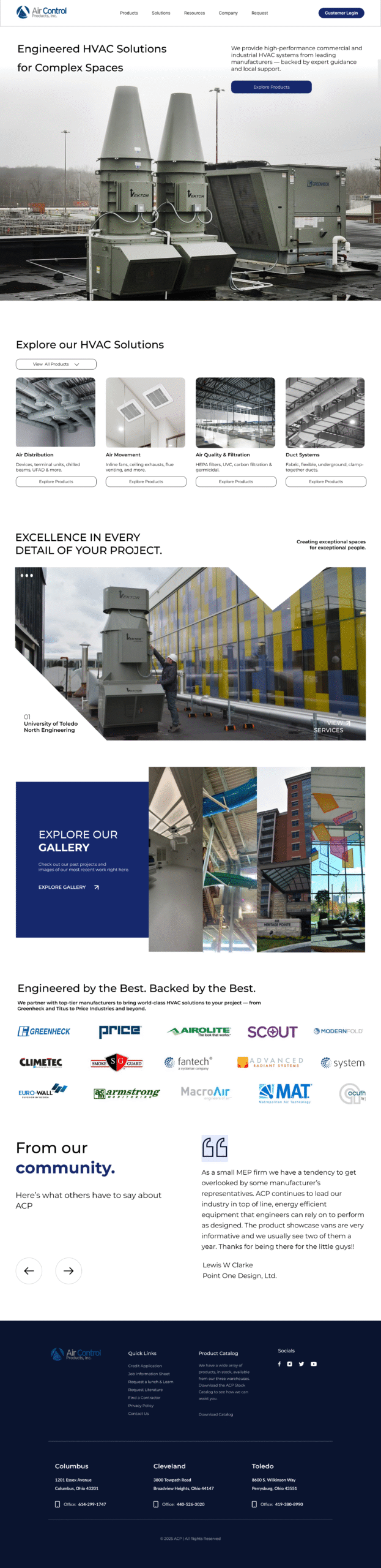 The client’s website needed a modern, user-friendly redesign to improve navigation, highlight solutions, and better reflect their industry leadership in HVAC systems. My role was to deliver a clean, professional UI aligned with their brand identity while optimizing for usability and clarity.